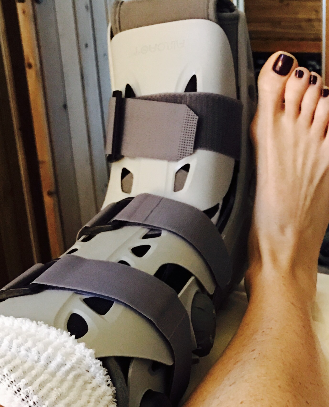 I was happy to have my fibreglass cast removed (oh, that poor bruised limb inside – was that mottled swollen mess really my foot? The one I knew so well? It looked like it belonged to someone else) and replaced with a boot contraption that can be removed to shower. It is a walking boot but I am not allowed to walk on it – I’m stuck with crutches for the next month and a boot the size of a VW hanging off my leg. But still…showering is good!